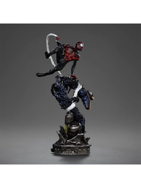 Figura de Miles Morales de 32 cm da Iron Studios. Baseada na popular franquia do Homem-Aranha. Figura de alta qualidade. Esta estátua de Miles Morales em escala 1/10 é feita de polystone de alta qualidade e pintada à mão. Ela retrata o herói em uma pose dinâmica, enfrentando um inimigo com tentáculos semelhantes a um simbionte. Parte do diorama "Homem-Aranha vs. Vilões".